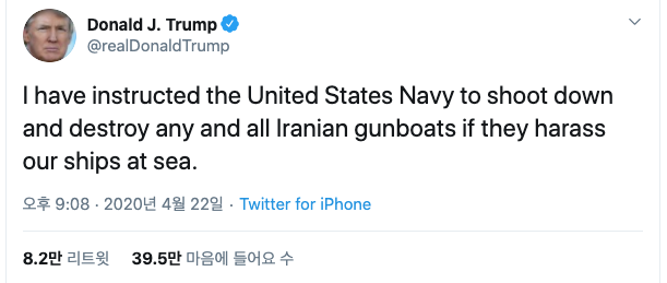 트럼프가 "이란 군함 쏴버려" 트윗 한 마디에 갑자기 오일 가격이 일시적으로 폭등을 하긴 했습니다.